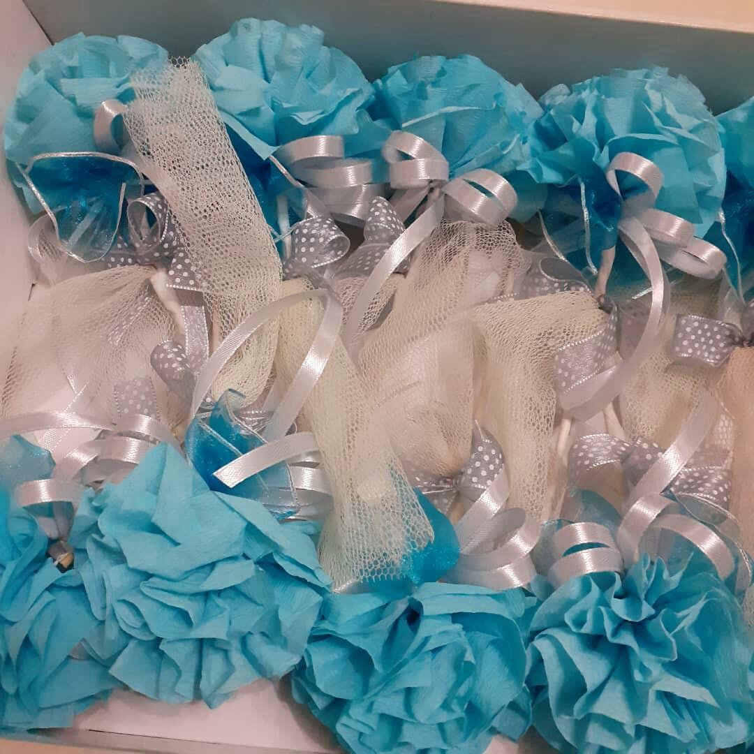 Bunga Telur Crepe Kombinasi Warna Biru Reben Kelabu Murah Murah Hobbies Toys Stationery Craft Handmade Craft On Carousell